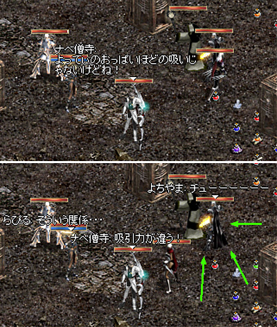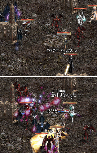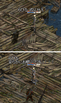 インしてテレビ見てた(w)ウィロさんと、夜なのに「明日休み☆」と言ってインしてきたえっちゃんとで、三人で混ぜてもらって、懐かしい?神殿にも、墓標(だっけ?)にも行きました。