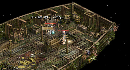 で、最近ネタでオカマエルフを作って育ててるんですけど、この子はまだアライメントが足りないので、しょぼーい装備でがんばって狩りしてます。なかなかに、新鮮で楽しいです☆