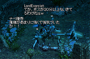そこいらで、明らかに低レベルなプレイヤーが、赤く光ったり、うっかり起こしちゃった石ゴレを必死で引きつつ弓を打ち込んだり、薄青ネームで牛歩なプレイヤーがいるような狩場にですよ、