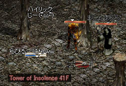 最初は前衛が誰もいなくて、エルフとWIZだけだったので、東海くんが黒騎士で前衛にw