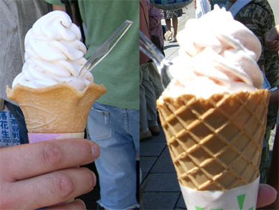 というのも、渡った先に「ムサシ」っていう有名なソフトクリームやさんがあるのを聞いて知っていたからです。