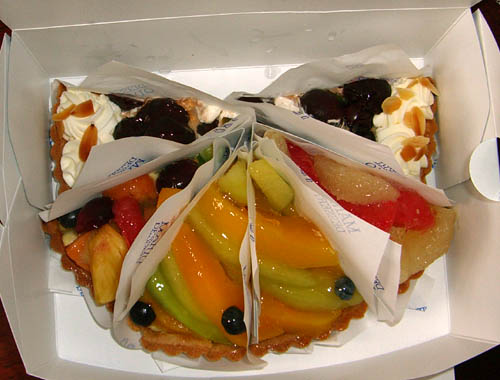 後の二種類(チェリーのチョコタルト・マンゴーとメロンのタルト)は両親とワンコがw