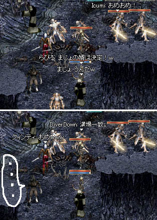 2Fの片隅で狩りしてて、途中、OGに変わって引き役やってたハイ君なんですが、なんか妙に歩みが遅いような…?って思ってたら