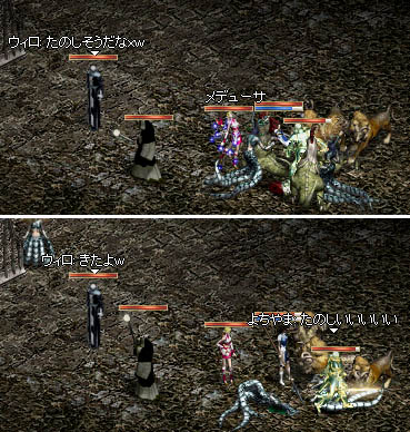 さて、狩り中。ダフちゃはでもどりレベル49だそうで。HPもMPも減っちゃったみたいだけど、そんな事はキニシナイ!