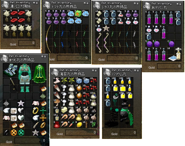 ちなみに、こちらはペットちゃんたちのインべ、ちょこっとだけ。